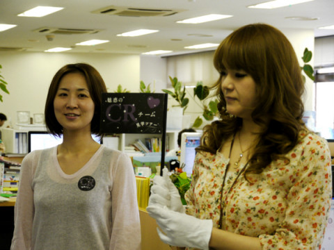 魅惑のCR見学ツアー 社内には、CRチームというお問い合わせにお答えするチームがいます。 メンバーは どういうふうに、仕事をしているのか社内のみんなで知ろう! ということで、CRチーム以外のひとが白い手袋をしたツアーガイドさんに 「魅惑のCR見学ツアー」と銘打ってガイドしてもらうのです。 今日は (最後尾にいる ツアーは指名制で、参加したひとが次の、参加者を指名します。 はい、そうですね。 この魅惑のCR見学ツアーの旗はまるで「SEX AND THE CITY」を思わせるデザインになっております。 designed by 次は、あなたかもしれない。 2010/05/13 16:34 |