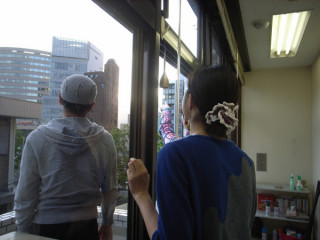 「犬と力士」と窓拭き。 「犬と力士」の著者の小松紘子がきのう事務所にやってきた。 何をしにきたかといえば、 「犬と力士」のアイデアを練にきたのだ。 弊社といえば、騒がしいのが相場だが、そんな環境の方がいいんだそうだ。 で、雑談をしていたら、今年もまた、 「日本ガラスクリーニング選手権」に出場するんだそうです。 今年は6月9日。 我々は、窓拭きについて造詣を深めるため、ベランダにでて、どのビルの窓は拭きやすいのか、など、教えてもらったのである。 2010/05/14 16:56 |