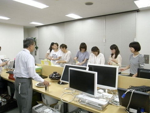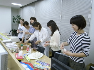 と誰かが言い出したのかなんか落ち着かないのか、おにぎりを作り出したら、ひとりまたひとりと人が増え、あっという間におにぎりラインができていました。