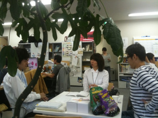 背後のテーブルにて、なにやらミーティングが行われています。