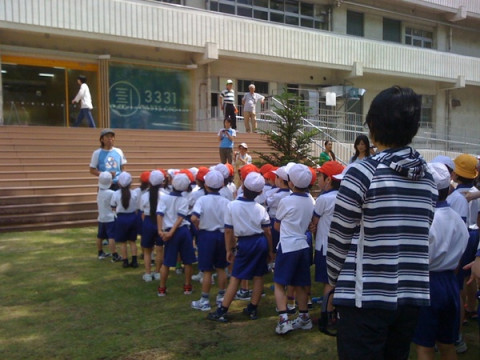 日比野克彦さんといっしょに種を巻くのは、近所の小学生たちです。