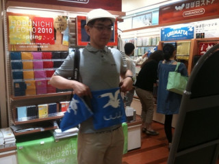 丸の内ロフトでは鏡を置いていただいているので、公衆の面前で試着はむずかしいですが、合わせていただくことは、できますよー。
