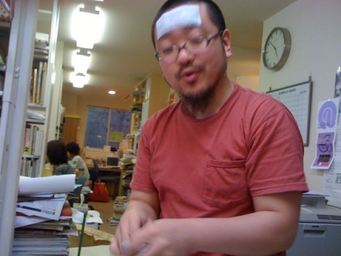 前から気になってたんですが 祖父江慎さんの事務所コズフィッシュには、以前から気になっていたんですが、いつもいつもおでこに冷却ジェルシート (デコデコクールや冷えピタなどのこと) を貼りつけている人がいるんです。 今日、思い切って声をかけてみました。 お顔はたいへんよく知っているスタッフの方なのですが、お名前がわかりません。 たぶん安藤さんだと思います。 まちがってたらごめんなさい。 で、訊いてみましたところ、やはりいつもお熱が出ているのではなく、冷却ジェルシートを貼ると仕事の能率がアップするからなんだそうです。 「頭がハッキリするんですよ」 とおっしゃっていました。 ケーキを購入した際などについてくる保冷剤を活用するためのハチマキのようなものも市販されているそうです。 「ジェルシートがないときに便利です」 とおっしゃっていました。 本日、コズフィッシュに伺うときに手土産にシュークリームを持って行きましたので、ついていた保冷剤をさしあげたところたいへん喜んでくださいました。 お仕事頑張ってください。 我が社ではときどき わたしも原稿書くときやってみます。 ありがとうございました。 2010/06/28 18:34 |
