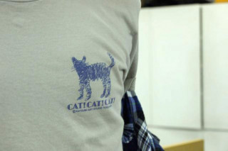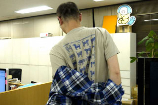 HOBONICHI ZOO わたくし、私事ではありますが、アニマルなTシャツが好きでして、着るのが趣味です。 なので、社内でもそういう類のものを着ているひとがいると、つい気になってしまいます。 昨日の もしやそれって‥‥? 「ネコっすよ!」 さすが、ネコを愛する男・オトヤ。 CAT! CAT! CAT! て書いてあります。 背中にも胸にもたくさんCAT。 それを近くで笑っていた そして、今日。 ちょっとちょっと、 あなたもしかして、ネコ様じゃない? 「そうです〜〜!」 あらあ、最近はみんな動物的な気分のようです。 と思ったら、自分もオオカミでした。 ほぼ日動物園へようこそ〜〜。 2010/06/30 18:12 |