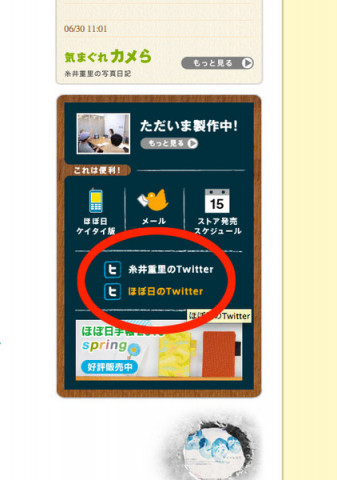らくらくツイッター。 さきほど、 「気まぐれカメら」下に、ツイッターへリンクされたボタンが出現いたしました。 よし、ここで紹介だ、とおもって、宇宙部&宇宙的デザイナーの写真を取ったんだけど、ふたりともびっくり顔になってしもうた。 そんなに? おどろかせた? というような写真の話はさておき。 専用のソフトなどを使ってない方におかれましては、日々のインターネット巡回活動のときにご利用くださいませ。 なに? このボタンの意味するものがさっぱりだ? こちらのページがたいそう詳しいですので、ぜひ、よんでみてくださいませ。 2010/06/30 17:51 |