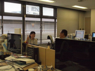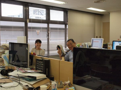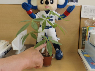ピース さきほどから、隣の席ながら会議している 漢字がたくさんの、むずかしそうな言葉をいっぱい使ってます。 元木は総務で、コギーは監査役として会社に常駐している人です。 私が話に参加してもよくわかりませんね、と伝えたら、順にピースで応えてくれました。 コギーの机で育っているパキラはこんなに大きくなりました。 ここに来たときは、ドアラくんの膝くらいだったのです。 「窓際は風が強いので ときどきファーッと倒れてる」 そうです。起こしてあげてください。 「これから夏の陽を受けて、 ぐんぐん大きくなるんだよー」 と、コギーは目を細めて言っていました。 2010/07/01 17:24 |