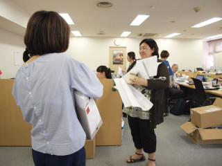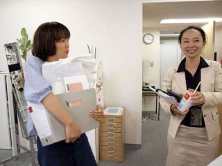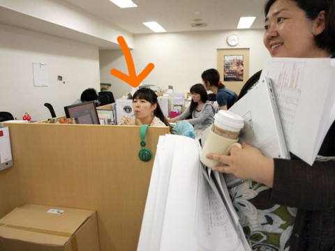 荷物多話 別室に用があり、1枚目の写真のような風景を横目にドアを出て数分後、戻ってくると、同じ風景がまだ存在していました。 3人はどこかでミーティングをしていたのでしょうか、荷物が多すぎです。 けれども、そこは立ち話、荷物を置きにいくことは、しない。 2枚目の写真を拡大していただくとわかるのですが、ちょうの左肘あたりから、もういまにもケーブルが滑り落ちそうになってるんですよ。 3枚目の写真をごらんいただくと、やまかわの持ってるBOXが変形しもういまにもがらっと崩れそうになっているのがおわかりになるかと思います。 いったい何の話をしているのかと近づいたら、やっぱり立ち話はおもしろくて、写真撮りがミイラ取りでミイラになってしまいました。 近くに座っていた コンテンツになるかはわからないけど、 「こういうこと、やってみようか」 というようなことでまとめて、やまかわが筋肉痛になる前に、この立ち話は終わったのでした。 2010/07/08 16:13 |