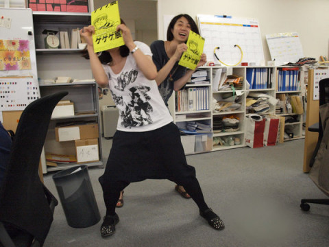 ゲゲゲ、ザイル 不思議な人たちと不思議な約束をとりかわしまして帰ってまいりました。 楽しいコンテンツが生まれる予感です。 おみやげに、祖父江さんから、8月11日に松屋銀座にて開かれる 「水木しげる米寿記念 ゲゲゲ展」 のチラシをいただいてきました。 3、4枚目の写真で我々が持っているすっごい黄色いものがそのチラシです。 祖父江さんっぽさあふれるデザインでわくわくします。 祖父江さんは今回 「ゲゲゲ展」の会場構成も担当なさるそうです。 会場から妖怪の気配あふれる予感、だそうです。 そいつはたのしみであります。 2010/07/15 18:32 |
