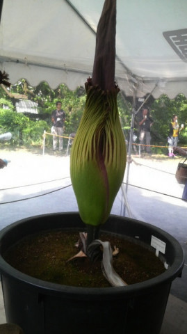 シブヤ、おのと3人で、ショクダイオオコンニャクをみにきました。