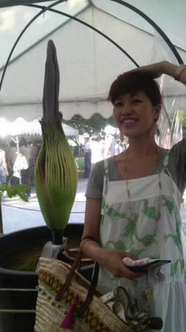大きさ比べのため、シブヤとショクダイオオコンニャクのツーショットを。