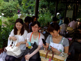 目的のショクダイオオコンニャクの側で休憩中の三人娘を発見!