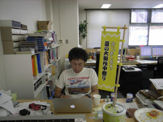 いただきました。 はっぴを着ない永田さんについてメールを2通ばかりいただきました。 --------------------はっぴを着ないのは永田さんですか。 永田さん、そういうことではいかんです。 祭りはなにがなんだかわかんないけど、わーっとみんなで祭りのなんやかやをやって 「あの時の祭り、楽しかったなぁ・・・。」 と思い出すまでが祭りです。 はっぴを着てください。 では、仕事に行ってきます。 帰ってきたら、製作中をまとめ読みします。 はっぴを着たのかどうかを確認するために、です。 楽しまないと、損するよ〜。 (連絡係☆) -------------------- 「お盆進行、というか」にて、永田さんの、世にも珍しい爆笑シーンに驚きです。 はっぴくらいなんだってのよ、とのことですが,この爆笑より珍しいものはないっすよ! カメラ目線ですら殆どないってのに。 誕生日メガネといい、はっぴといい、自分の中にある何かに反することは絶対にしない、そんな永田さんで、いいと思います。 (サリオ) -------------------- 着るも自由、着ないも自由なのですが着る派としては、着ない理由がいまいち理解できません。 たぶん、永遠の平行線でしょう。 でも、それはほら、武者小路実篤のいう 「されどなかよし」ですよ。 うん。うん。 アイコンの鉢巻は許してくれてるしね。 2010/08/05 13:23 |