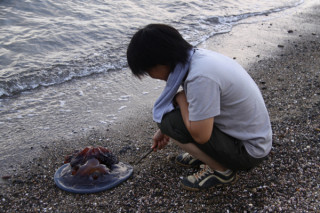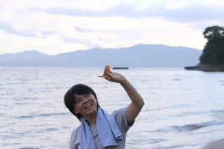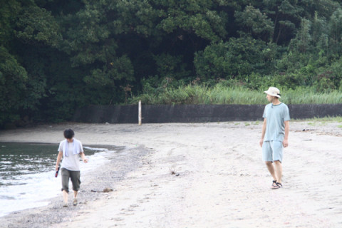 あまくさにて。 天草で余宮隆さんのお店と工房を訪れたあと窯でのお仕事が終わるまで待って、インタビューをします。 それまでちょっと時間があるので福森道歩さん、細川護光さんとちかくの海岸に寄ってみました。 「虹〜!」 「ほらー、カニー!」 「くらげーっ!」 と、はしゃぐ道歩さん。 それを見守る護光さんはほんとの兄のようです。 ていうか遠目には父娘に見えなくもないですね。 天草は、ときどき襲う驟雨のあいだに南国らしい陽がさしてほんとうにうつくしいところですよ。 2010/08/05 18:45 |