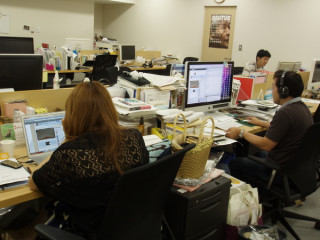 社内の面々も、残業しながら、ライブのはじまりを今か今かと待ちわびています。
