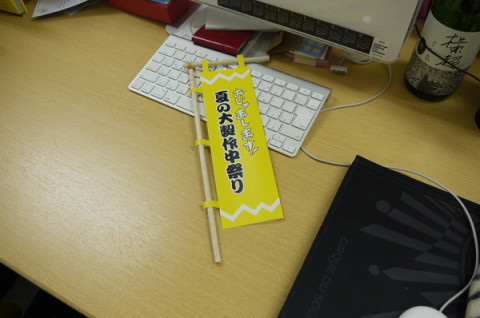 スガノの席にぽつんとのこる製作中祭りののぼりにエールをおくりつつ、深夜の製作中まつりをいったん締めさせていただきます。
