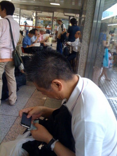 新幹線の待ち合いにいると、向こうに伸坊さんと永田さんが。