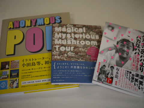 色んな本を、勝手に紹介! 勝手に本を紹介するコーナー。 ドンドンドンパフパフー。 まずは、左から。 ムーンライダーズのジャケットのイラストを描かれ、 「がんばれ、ゆうがたフレンド」のコンテンツの挿絵を描いてくださった小田島等さんの初の作品集 「ANONYMOUS POP」。 いままで描いたCDジャケットや本の装丁に使われたイラストがたくさん載っていてボリューム満点。 ぱらぱら見ていると、たのしいです。 去年のちょうど今頃にやっていた キノコ展にも関わっていらっしゃった飯沢耕太郎さんの新刊の 「マジカル ミステリアス マッシュルーム ツアー」。 これはキノコにまつわる本のコレクション、グッズコレクション、いしいしんじさんによる 「きのこ小説」など、きのこ山盛り! たまりまへん。 「バカボンのパパよりバカなパパ」。 赤塚不二夫さんの娘さん・りえ子さんがあのめちゃくちゃなお父さんのことを書いています。 バカボン展のコンテンツがあったのも、ちょうど、去年の夏でしたよね。 あ、今年の夏の松屋は「ゲゲゲ展」ですね。 11日からだ! 夏は忙しいけど、お家で昼寝しながら読書ってのも、いいですよね〜。 わっしょい、わっしょい! 2010/08/06 13:32 |