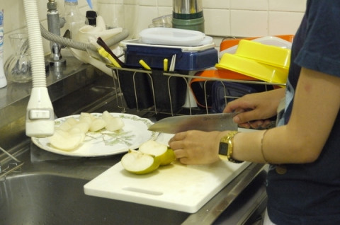 もう暑くて、 とりあえず梨を剥いてみました。