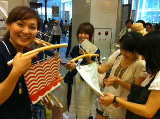 がお相手しているこちらの方たちは、ハラマキを手に