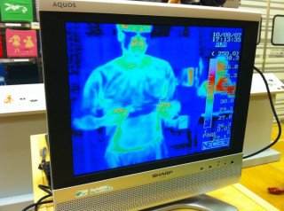 と言いつつ、サーモで測定してみると、お腹、真っ青!!