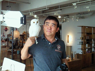 ふくろうと短パン王子。 先日、目黒にある「CLASKA/DO」へ手帳の撮影で、行ってきました。 「ほぼ日作品大賞」で審査員をやってくださっている、大熊健郎さんのいらっしゃるお店です。 手帳の撮影と言えば、短パン王子こと、 (この言葉何回書いただろう…)の、カメラマン大江さんも、もちろんいっしょです。 この、肩にふくろうをのせている大江さんをどうしても見てほしくて、ほぼ日はお休みだというのに、製作中に登場してしまいました。 今日、お仕事のみなさま、ほぼ日をご覧のみなさま、どうですか?この大江さん。 そ、それだけだとなんなので (大江さんスミマセン!)、お休み中におすすめの企画展のお知らせを。 今、「CLASKA/DO」では、 「DO と hoken の83(ハチミツ)展」 という、企画展を開催中です。 私もお休み中に、見に行く予定です。 ハチミツ好きなもので、撮影中も気になって仕方ありませんでした。 もしよかったら、みなさんもいかがですか? 2010/08/11 11:00 |