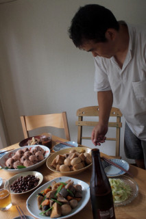 アツイよー! 京都のみんなも元気そう。 こちら『LIFE』チームはお盆開け初日、単行本第3巻のための取材&撮影をいたしました。 調理、とうぜん、火をつかうのと、できあがりの撮影は 「表面がかわいちゃうから」ということでエアコンを止めるんです。 だから‥‥暑い! ものすごく暑い! でも、がんばれば、試食が待ってる! 暑いけどおいしい! 地獄に仏? だんだんとぼんやりしてくる頭をたくさんの水分でおぎなってチームいちどう、3つのレシピの収録をいたしました。 ちなみに画像のメインは 「角煮」でございまーす。 『LIFE』の取材はあと、ふた山くらい残っております。 がんばりまっす。 2010/08/17 10:31 |