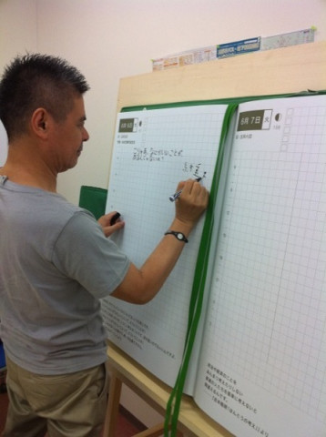 手帳2011幕開け! 京都での手帳2011の発表と梶原しげるさんと糸井の対談は緊張と興奮のなか、無事終了しましたっ。 お越しいただいたみなさま、中継をご覧いただいたみなさま、応援をいただいたみなさま、そして梶原さん、ロフトのみなさま、ありがとうございました! いよいよほぼ日手帳2011の幕が開きました。 京都が発祥の地である巨大手帳の最新版は明日からここ京都出張所に飾られます。 ある意味、京都名物! よかったら記念撮影してくださいね。 帰途に着いたしゃちょー、乗組員のみんなー、気をつけて帰ってくださーい。 居残りメンバー 2010/08/18 21:52 |