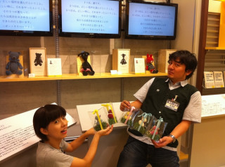 さらに、ここだけ情報! 京都居残り組からのインフォメーションその2! 昨年Tシャツと一緒に発売されたときあっという間に完売した ごく・らくパンツがお蔵出しされました。 まだまだあっつい日々、ごくごく、らくにはけるショートパンツです。 数に限りがありますので気になる方はお早めに! そして展示品にまぎれていますが、タカモリ先生が今回の京都企画のために作ってくださったあみぐるみと「ひよこキーホルダー」。 タカモリ先生の作品を直接見れて、購入できる機会は多くありませんのでご来店の際はぜひチェックを! (3体のあみぐるみが隠れないように、と おかしなポーズをとっている にんげんのことは 気にしないでください) ではでは昨日の余韻がうっすら残る京都からのお知らせでしたっ。 2010/08/19 11:42 |