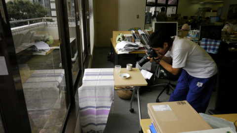 毎度おなじみのカメラマン 担当デザイナーです。 社内の窓際で、シャッター音が聞こえると、たいてい彼が、ページ用の写真を撮っています。 わたしはそこによく出くわし、度々、ここに掲載しています。 今日も近くで 「カシャーン」という音が聞こえてきました。 ももも、もしや! やっぱり! 近々、お茶の販売があるということですね。 たっちさん、今回のお茶を一言で言うと? やや鼻声で、言っていました。 どんなのなんだろう。 どうぞ、おたのしみに! 2010/08/19 13:29 |