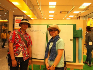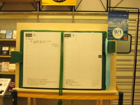 京都ロフトの巨大手帳のこと ほぼ日ストア京都出張所の開催期間が残り2週間となりました。 いやーはやいものです。 もう、夏が終わっちゃいますねー。 京都ロフト班も、8.18の手帳ラインナップ発表のあと東京にて、毎日あたふたする日々。 さて、そんな中、現場から巨大手帳の写真が届きました! 知らない人はまったく知らないけど知っている人にはとっても有名な話、京都ロフトには、ここ数年、巨大手帳が登場してるんです。 例年、天井に飾られてるこの模型、今年の京都ロフトでは、ちょうど大人の背の高さぐらいのところに飾られております。 真ん中の写真は、イベント当日に来場してくださった素敵なお客さんに、わたくしナカバヤシが(半ば強引に) 巨大手帳前での記念撮影をおすすめしたときの写真です。 ロフトさんにも許可を頂いてますので京都ロフトにお越しのさいは、みなさまも、ぜひ一枚巨大手帳の前で記念写真はいかがですか? タカモリ・トモコさんのあみぐるみもみなさまのご来店をお待ちしてまーす。 残り2週間、まだの方はぜひ一度、京都ロフトへ〜。 2010/08/25 11:00 |