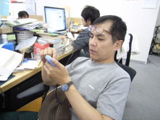 ふつうの携帯、アンドロイド携帯、iPhone4、そして、もっさい携帯などさまざまな機種で、乗組員が確認中でございます。