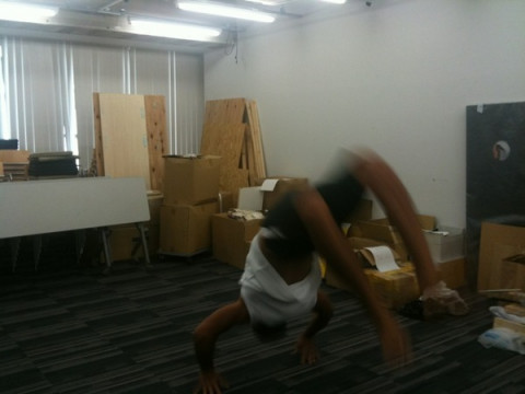 おまけに、最近練習中のアクロバットを実演!