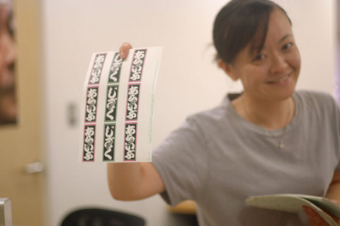 が全乗組員に、何やらラベルのようなものを配っていました。