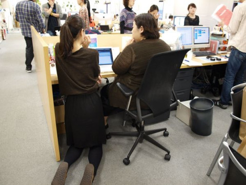 と言われて、顔を上げると目の前はたしかに人がいっぱいでそこここで「立ち話打ち合わせ」が行われていました。
