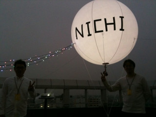 日が暮れ、授賞式会場の屋上がいい感じになってきました。