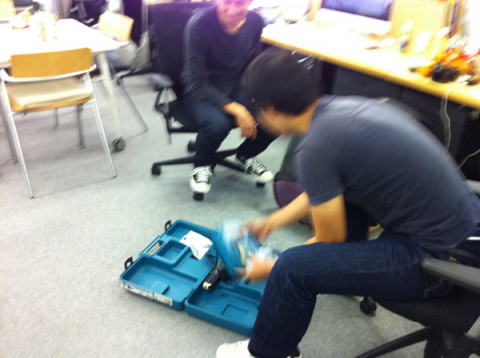 道具はいりました〜。 山口工務店様に お届けものがあったようです。 社長社長、それはなんですか?? 「マキタの充電式の スクリュードライバーです。」 えーと、カクテルの名前じゃないとしたらそれは何をするもの?? 「ネジを回すものです。 いままであったものは、 一本づつしかできなかったんですが、 あ、つまり社員に、ドライバーを 一本づつわたしてもらっては、 ウイーンとしてたのですが、 これは、連射ができます。」 つまり、いわゆるネジマシンガン? 「ネジマシンガンかどうかはおいといて、 マシンガンのような 仕組みということですね。」 じゃ、みなさんで! はい! 2010/10/12 12:44 |