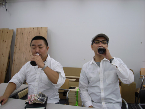 お肉をたべてお腹のお肉がきになったので、おそろいのシャツで、おそろいのウーロン茶をかってかえっていました。