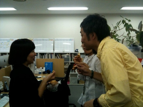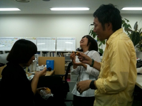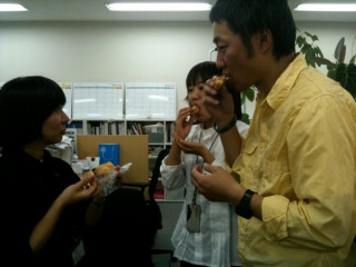 お世辞は禁止だったのに 「何を食べながら話してるのか」 と問われました。 これはわたしが休日に卵と粉と牛乳とバターで作ったスコーン的なものですが、あまりおいしくない仕上がりなのでこうして会社に持ってきて自分で責任もって食べようとしているのです、と答えました。 永田の隣の席の 「それならば私が食べてあげましょう」 「それならば私も食べてあげましょう」 と言うので、与えてみました。 ただし、ひとつだけ条件がある。 おいしくないのは、わかってるから。 お世辞は、いらないから。 「わかってる」 「わかってます」 固く約束して、ひとくち。 「か‥‥からだによさそうな」 「‥‥これは、はらもちがいい」 ‥‥‥‥‥‥‥‥。 約束、わかってる? 「お、お世辞は、言うてしまうな」 「言うてまうわ」 全員「ふははははははは」 鉄則:人は、手づくりのものを食べると禁じられていてもお世辞を言ってしまう。 2010/10/19 15:25 |