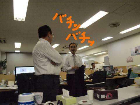 この、社内の平均年齢をさりげなくつりあげるおとうさんのようなふたりがこのように、ものすごい牽制をお互いに放つのは。