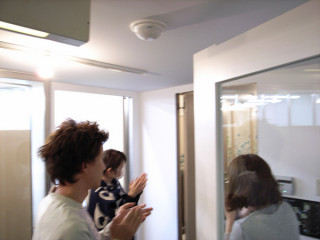 ライブ、はじまりました! 本日20時より、弊社会議室「temae」にて、 ライブが! いままさに、 ライブ中継をしております。 出演はボサノバシンガーのCATIAさんのほか宮沢和史さん、鳥山雄司さん、saigenjiさん、TOKUさん他でございます。 現在会場は、中継スタッフ立ち見の乗組員などごった返しつつ盛り上がり中です。 えー、ライブ前に、 「すごい機材」を前にべいちゃんが「ケーブル」の説明を情熱的にしてくれている写真をここに。 今日の機材はすごいらしいのです。 「ほぼ日史上、最高画質かつ最高音質」 だそうであります。 お時間あれば、今からでもぜひ! 2010/11/02 20:40 |