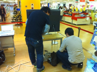 がほぼひとりで必死にモニターとパソコンの接続や設定をし、わからないと会社にいる宇宙部にテレフォンで指導をしてもらっていました。