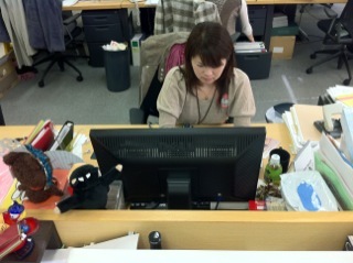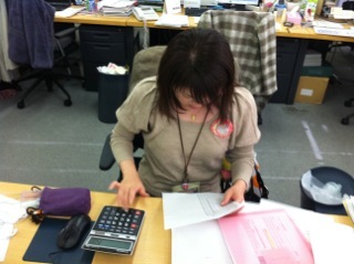電卓のブラインドタッチ 最近、経理的な締切が何か近づいているのでしょうか、お向かいの席の ドドドドドドドド、ドドドドドドドド、というかんじです。 上から覗いてみましたら、電卓をブラインドタッチで打っていました。 経理界では当たり前のようなのですが、わたしははじめて知りました、電卓のブラインドタッチを。 ためしに、隣の (ただし、彼の場合は 右手で字を書くために 左手のブラインドタッチです) ※‥‥よく考えたら、いまの席は 横と前を経理に包囲されてますね。 経理的の人たちにとって、電卓はとても大切なものなんだそうです。 なぜかというと、電卓のボタンの間隔と打ちごこちを自分の手が憶えているから。 いつも「壊れたらどうしよう」と思っているんですって。 もしも買い替えなきゃいけなくなったときはなるべく似たものを、必死に探すそうです。 2010/11/09 14:42 |