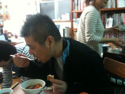 ピンポーン 突然鳴るチャイム。 チャイムの音から間髪入れずに、入ってきたその影は。 ハローミスタープレジデント。 社長ちゃんが、急に現れました。 現れて一分後、すぐにビーフシチューが出てきてもう、食べています。 「うん、うん」言いながらバクバク食べています。 彼は今日は、腹具合を控えめにセーブするんだと思います。 たぶん。 あ、目の前で 「おれ、今日から節制するつもりだったのに」 って言ってる! てことは、セーブしないということです。 本日セーブ作戦を、中止します。 もう一度言います。 セーブ作戦を、中止します。 2010/11/16 17:30 |