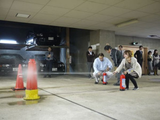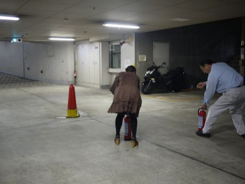 いっぽう、そのころ。 神戸隊も到着したようですが、いっぽうそのころ。 東京糸井重里事務所ではビルの防災訓練が行われました。 いつもは閉ざされている緊急避難用の扉を開けます。 非常階段をおります。 わたしの前にいるのは、火事が起こった緊急事態(という設定) だというのに席を立つときに、あわててコートを着込んだ女 赤いコーンを火に見立てて、水の入った訓練用の消化器を使っていざ、開始。 トップバッター 「火事だ!」というセリフを言い忘れた 今日、弊社防災訓練リーダーに任命された 帰りは社内の消化器の位置を確認して、再びデスクに戻りました。 2010/11/19 15:22 |