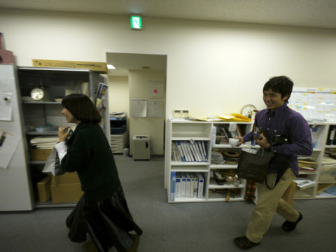 たぐちさんのドタバタ 今日(25日(木)午前11時〜)発売の 「簡さんのお茶」の販売準備のために、デザイナー そのドタバタを、担当の その、騒がしい様子に 「なんだ? なんだ?」 と、近所のヤジウマたちが見に来ます。 近くで見ていた 「ああでもない、こうでもない」 と、レフ板をアシストしています。 わたしはこのジタバタを、毎回、ここにアップしているので、今回もなんとかアップできてよかった‥‥。 実は みんな、それぞれおつかれさまです。 「簡さんのお茶」は、ほんとうに、おいしいですよ〜! 2010/11/25 10:35 |
