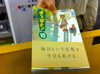 マンガにテチョウ マンガでドミノ担当の 「ホレ」と1冊のマンガを渡してきました。 見るとそのマンガは 先日のマンガでドミノで掲載した 「よつばと!」の最新刊の10巻。 なんでも、この週末に読者の方から 「『よつばと!』に『ほぼ日手帳』が!」 のメールがたくさん届いていて、確認のために買ってきたそうです。 で、実際に見てみると1ページの3コマ目にバタフライストッパーと2本のしおりがついた手帳が机の上に。 これはまちがいなく「ほぼ日手帳」! どんなふうに描かれているかを見せてしまうようなヤボなことはしません。 ぜひ、あなたの目で! 2010/11/29 15:15 |