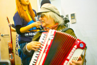 、アコーディオン持ったり、謎の機械を持ったり、いそがしそうです。