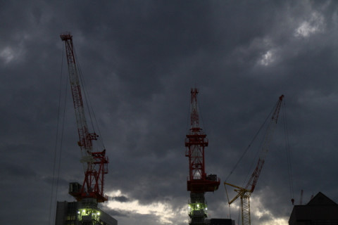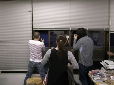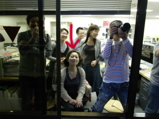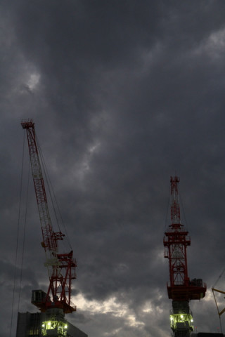 空がこわい。 朝は豪雨で、お昼はばっちり晴れていると思っていたら 「ね、ね、空がこわいよ」って そうすると、あれよ、あれよ。 みんなが窓際に集まり、びゅーびゅーとふく風とこわい空をひとしきり味わう。 「まだ4時台なのにね」 「工事のひと、大丈夫かな」 「悪魔が降りてきそう」 「夜は寒くなるのかなぁ」 「今日は早めに帰ろうか」 とめいめい、独り言のような感想をつぶやいていたのでした。 ところで、TMレボリューションのように風を感じているタナカちゃん、席からそのまま椅子をころがして窓際まで来てたんだね‥‥。 ※こわい空の写真は 2010/12/03 16:38 |