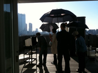 は長身をいかし、モデルさんや、スタッフさんの日除け係になっていました。