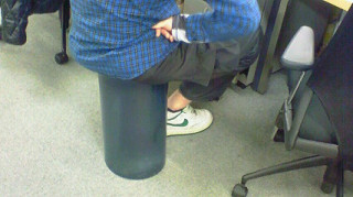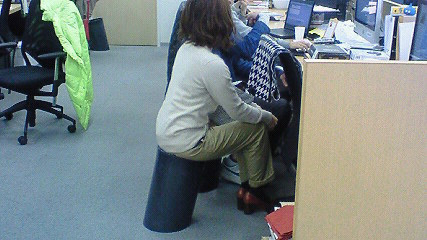 この斜めのゴミ箱、うちのデフォルトゴミ箱なんですけど、みんながよく椅子にしているんです。